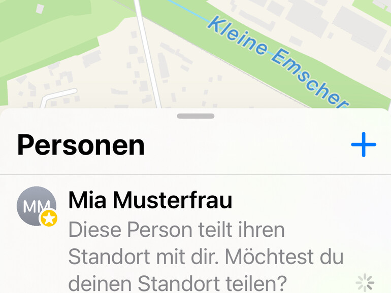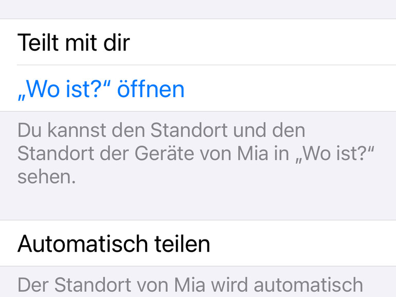 Umgekehrt kannst du sagen, wo du bist: Die „Wo ist“-App öffnen, dort „Personen > NAMEN“ auswählen, dann die Plus-Taste drücken und „Standort teilen“.