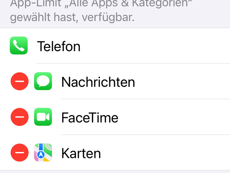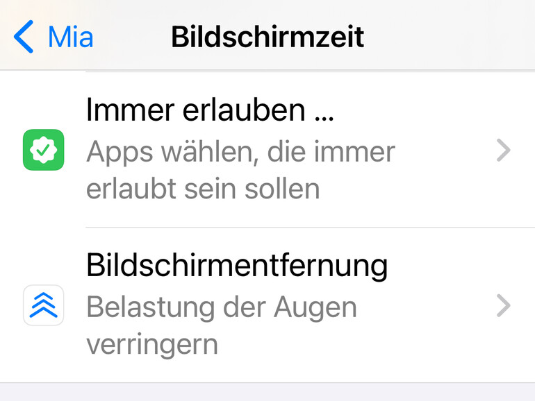 Du kannst auch App-Ausnahmen der Auszeit definieren. Unter „Einstellungen > Bildschirmzeit > Immer erlauben“ legst du fest, welche App immer verfügbar sein soll.