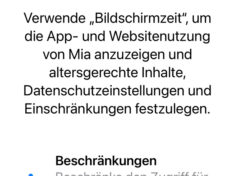 Gib unter „Einstellungen > Bildschirmzeit > NAME > Bildschirmzeit-Code ändern“ einen Code ein, mit dem diese Einstellungen geschützt sind. Er sollte in Elternhand verbleiben.