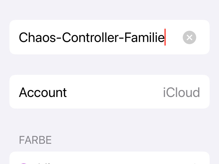 Erstelle nun einen gemeinsamen iCloud-Kalender für die Familie in der „Kalender-App“, tippe ganz unten auf „Kalender“ und (unten links) „Hinzufügen > Hinzufügen“.