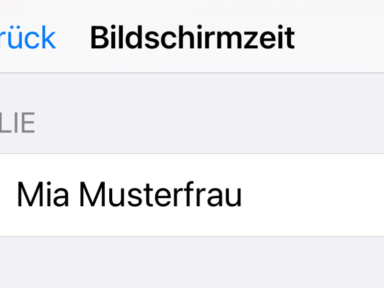 Wähle „Einstellungen > Bildschirmzeit“ und etwas weiter unten den „NAMEN“ deines Kindes. (Unser Beispielkind musste unter diesem Namen nicht leiden)