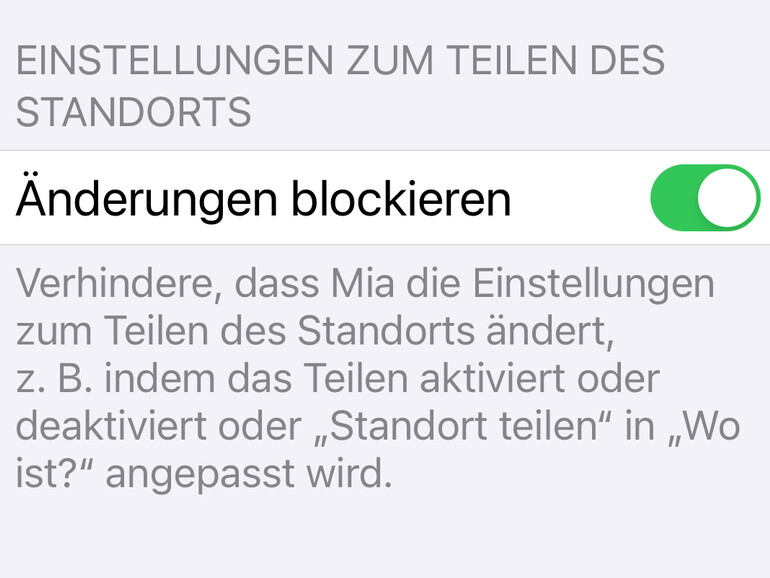 Wenn dein Kind „Wo ist“ einfach abschalten möchte, kannst du das präventiv verhindern: „Einstellungen > Familie > Name > Standort teilen > Änderungen blockieren“.