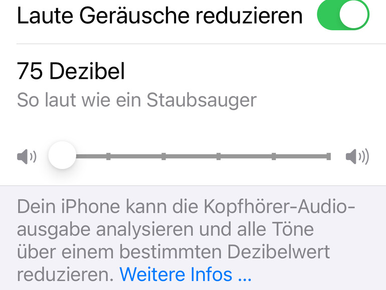 Auch die maximale Lautstärke kannst du reduzieren (auf dem Kinder-Gerät): „Einstellungen > Töne und Haptik > Kopfhörersicherheit > Laute Geräusche reduzieren“.
