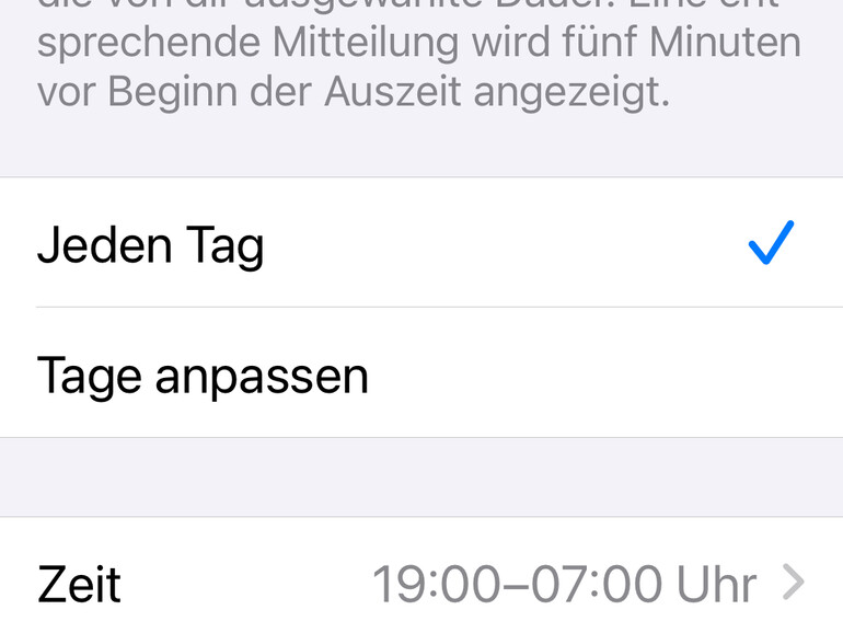 Die unbeliebteste Funktion aus Sicht deines Kindes: Mit „Einstellungen > Bildschirmzeit > Auszeit“ stellst du ein, wann das iPhone nicht mehr benutzt werden kann.