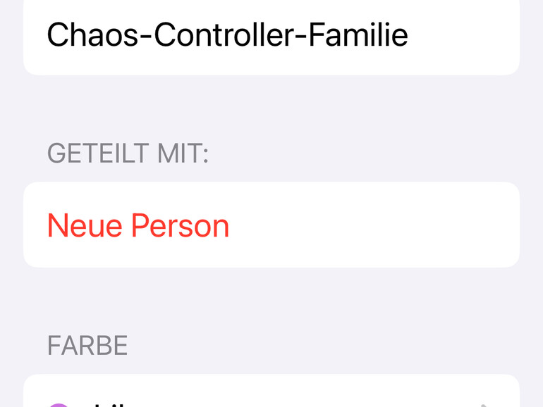 Tippe in der Kalender-App erneut auf „Kalender“, wähle den Familien-Kalender und das i-Symbol, dort „Geteilt mit“ die Personen, die ihn sehen (und/oder bearbeiten) dürfen.