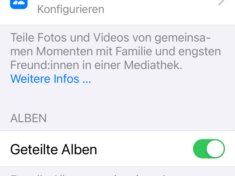 Die private Fotomediathek und der private Kalender sind höchstpersönliche Dinge, die in der Regel nicht für die Öffentlichkeit gedacht sind. Und doch gibt es gute Gründe, seine Fotos oder seine Termine zu teilen. Das funktioniert bei Apple im Einzelfall über den „Teilen-“ Button und funktioniert via Airdrop ganz hervorragend und problemlos. Für das eine Foto und den einen Termin. Aber dein Familienleben produziert in der Regel eine Menge an Fotos, die geteilt werden wollen. Auch hier hat Apple an uns Familienmenschen gedacht und bietet eine dauerhafte Freigabe in Form einer gemeinsamen Mediathek und einem (oder mehreren) gemeinsamen Kalender. Folgendes funktioniert unabhängig von einer Familienfreigabe und ist auch mit Freunden oder Arbeitskolleginnen möglich. Die Personen (inklusive der Familienmitglieder) müssen unter „Kontakte“ eingetragen sein. Übrigens: Die Fotos und Videos in der „Geteilten Mediathek“ tauchen nicht doppelt in deiner privaten Mediathek auf, aber du kannst jederzeit zwischen den Mediatheken hin- und herwechseln.