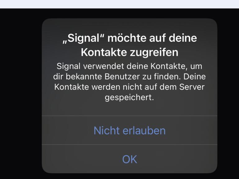 1. Öffne den App Store und lade die Signal-App auf dein iPhone. Beim ersten Start gewährst du Zugriff auf deine Kontakte und kannst der App einräumen, dir Push-Mitteilungen zu senden.