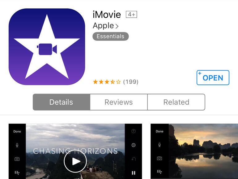 Wenn sich die iMovie-App noch nicht auf deinem iPhone befindet, kannst du diese aus dem App Store laden – gratis, wenn du dein iPhone nach 2013 gekauft hast. 4K ist nur für das iPhone 6s & 6s Plus verfügbar.