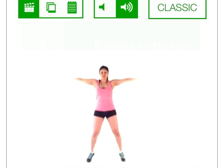 Die App zeigt die Übung wahlweise mit einer animierten Trainerin oder mit statischen Fotos und gibt Kommandos mit einer freundlichen Männerstimme. Die Übungen werden mit Zeitsignalen aus- und mit Gongs eingeläutet. Auch auf dem iPhone gut lesbare Zeitsymbole zeigen, wie lange eine Übung noch dauert. Der Fortschritt lässt sich im Trainingskalender dokumentieren, der sich automatisch aktualisiert. Ein Ergebnisprotokoll kann auch die Gewichtsentwicklung aufzeichnen. Das Grundpaket bietet für den günstigen Preis schon eine Menge, wer möchte, kann Bonus-Packs nachkaufen.