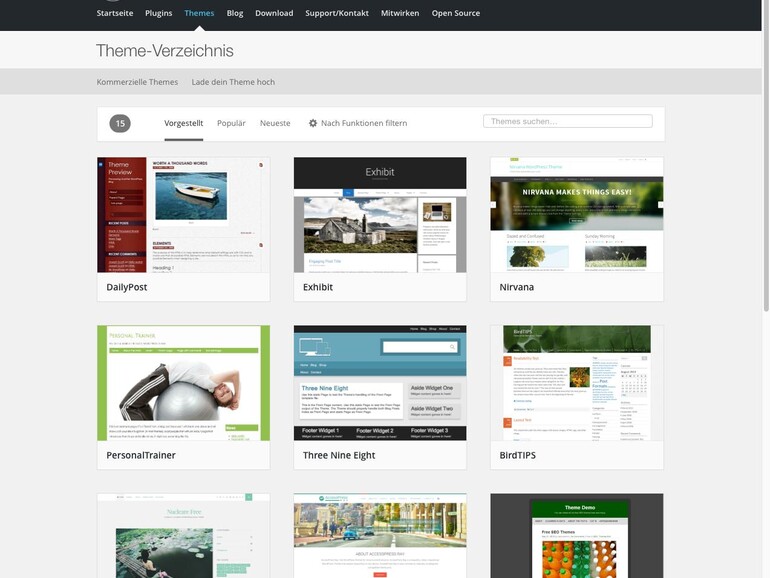 Die meisten Themes bieten eine Vorschaufunktion. Dies können Bildschirmfotos sein oder eine Live-Vorschau, bei der du dich durch das Theme klicken kannst. Letztere gibt einen besseren Eindruck, zudem findest du auf den Unterseiten häufig Informationen darüber, welche Schriften und weitere Layoutoptionen zur Verfügung stehen und wie du diese nutzen kannst. Ihre Webseite muss bei Verwendung einer entsprechenden Vorlage aber nicht exakt so aussehen. In der Regel kannst du ein Theme entsprechend deinen Wünschen anpassen. So lassen sich einzelne Kästen oder Seitenleisten ein- oder ausblenden, Farben und auch Schriften verändern. Zusammen mit Ihren Bildern bekommt die Seite so ein persönliches Aussehen, das sich mitunter optisch sehr deutlich von einer anderen Webseite unterscheidet, die mit demselben Theme arbeitet. Das gilt auch für die drei vorinstallierten Themes.