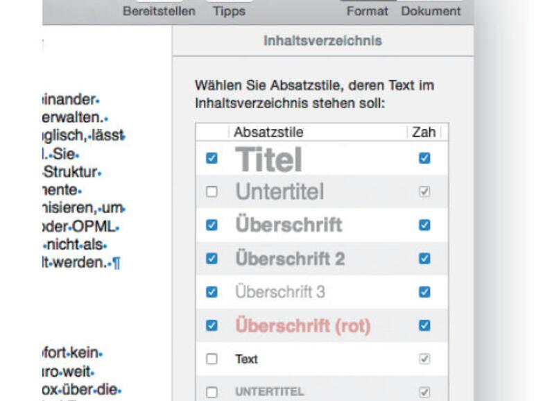 Inhaltsverzeichnis formatieren