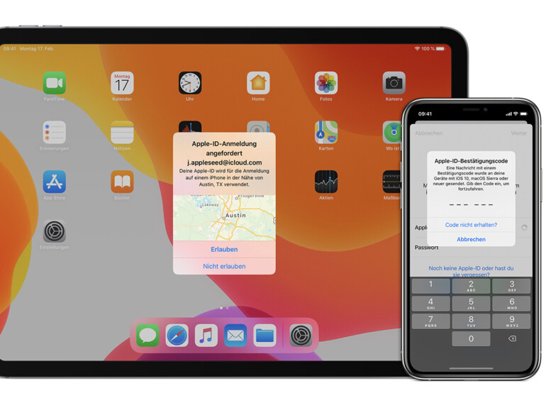 Sobald dein Gerät erfolgreich authentifiziert ist, wirst du wohl immer wieder mit der Zwei-Faktor-Authentifizierung zu tun haben. Bei einem Login in deinen Apple-Account von einem nicht-registrierten Gerät, erhältst du eine Benachrichtigung auf eines deiner hinterlegten Gerät mitsamt Standortdaten, die du erst bestätigen musst, bevor der Zugriff erteilt wird. Daneben muss ein Bestätigungscode eingegeben werden. Dies erhöht die Sicherheit deutlich.