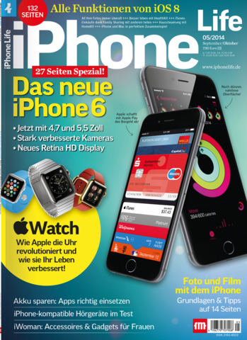 Die neue iPhone Life ist mit 132 Seiten umfangreicher als je zuvor: In einem Spezial von 27 Seiten erfahren Sie alles zum neuen iPhone 6, zur Apple Watch und zum iOS 8.
