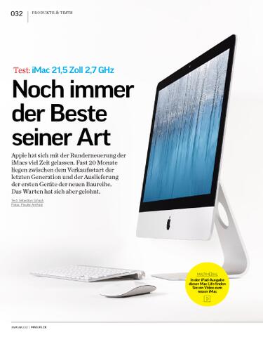 Test: iMac 21,5 Zoll 2,7 GHz Apple hat sich mit der Runderneuerung der iMacs viel Zeit gelassen. Jetzt sofort lesen Print-Ausgabe kaufen Inhaltsverzeichnis Oder in der Kiosk-App lesen