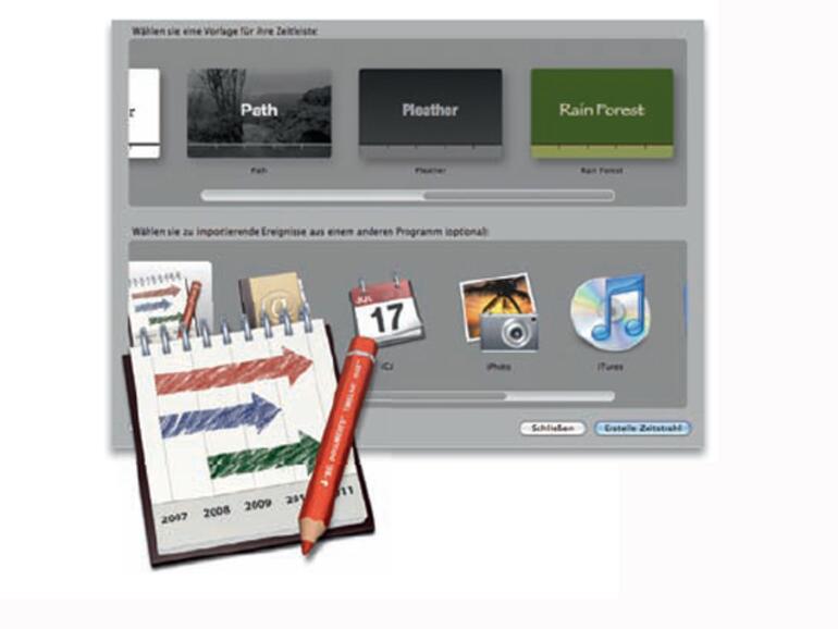 Solche Zeitlinien mit Mac OS X zu erstellen, ist schon seit längerem möglich. Bee Docs Timeline gibt es gleich in zwei Versionen, wer 3D und erweiterte Exportfunktionen nicht braucht, ist mit der 25 Dollar günstigeren Standard-Edition am Besten bedient.