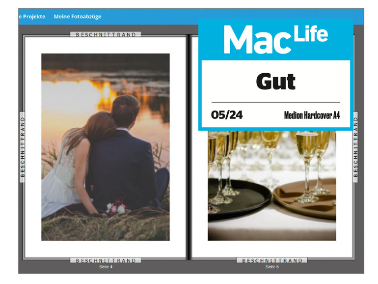 Medion liefert ein Fotobuch Hardcover A4 Hochformat mit mattem Papier. Die Druck- und Verarbeitungsqualität ist gut. Optische Highlights fehlen zwar, doch dafür stimmt der Preis. Insgesamt eine gute, günstige Alternative für ein Standard-Fotobuch.