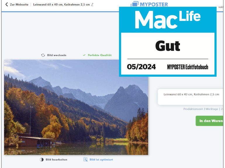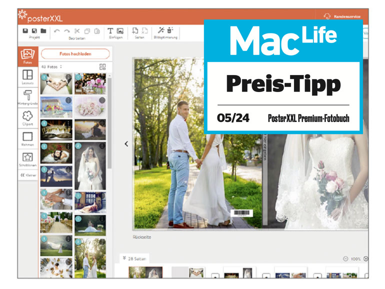Auch das Fotobuch von MYPOSTER kommt in einer schicken, weißen Geschenkebox. Die Bild- und Verarbeitungsqualität sind erstklassig. Die Gestaltungsmöglichkeiten sind zwar nicht ganz so vielfältig wie bei den Topplatzierten, dürften den meisten jedoch vollkommen ausreichen.