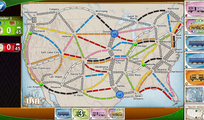 In Zug um Zug dreht sich alles um die Eisenbahn. Jeder (KI)-Spieler darf pro Runde zwischen mehreren Aktionen wählen: Entweder werden sogenannte Ziel- oder Wagenkarten aus den entsprechenden Stapeln gezogen oder Waggons auf dem einem Streckenplan nachempfundenen Spielbrett platziert. Die Waggons zur Inanspruchnahme einer Strecke lassen sich aber nur dann ausspielen, wenn man über genügend Wagen-Karten der auf dem Spielplan für den entsprechenden Abschnitt ausgewiesenen Farbe verfügt. Ziel des Spiels ist es, möglichst viele und lange Strecken zu besetzen und viele Zielkarten zu erfüllen. Online darf dabei gegen andere iPhone-, iPad-, Mac-Spieler angetreten werden. Auch Ticket to Ride ist bereits seit Jahren im App Store erhältlich und wird laufend mit Updates versorgt. Das Spiel lässt sich über In-App-Käufe um zusätzliche Spielpläne erweitern.