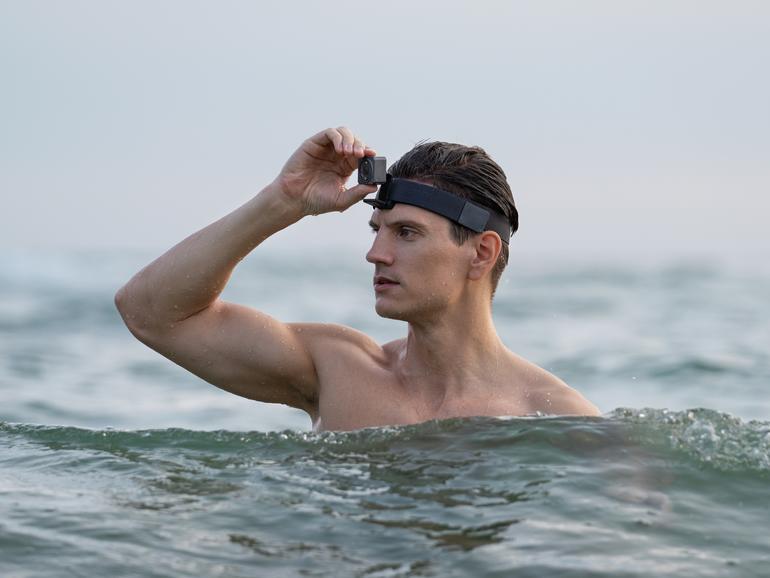 Zusätzlich gibt es ein sehr interessantes Makro-Objektiv, welches du ebenfalls ganz einfach magnetisch anklicken kannst, ein magnetisches Kopfband, das besagte wasserfeste Gehäuse, einen schwimmfähigen Griff und einen Verlängerungsstab mit Fernsteuerung.