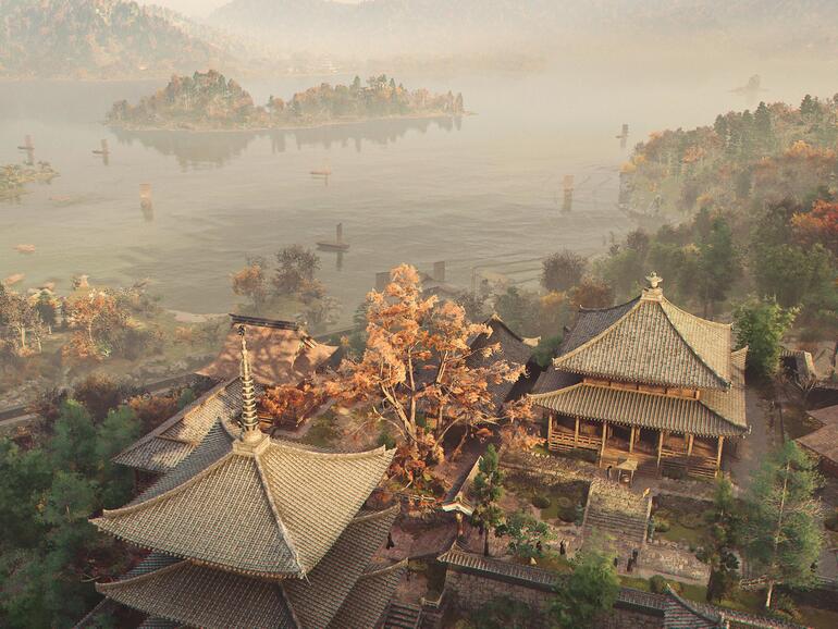 Japanische Tradition trifft auf dramatische Story — ein Moment der Ruhe am Byoudou-in-Tempel. (Bild: Ubisoft/Screenshot)