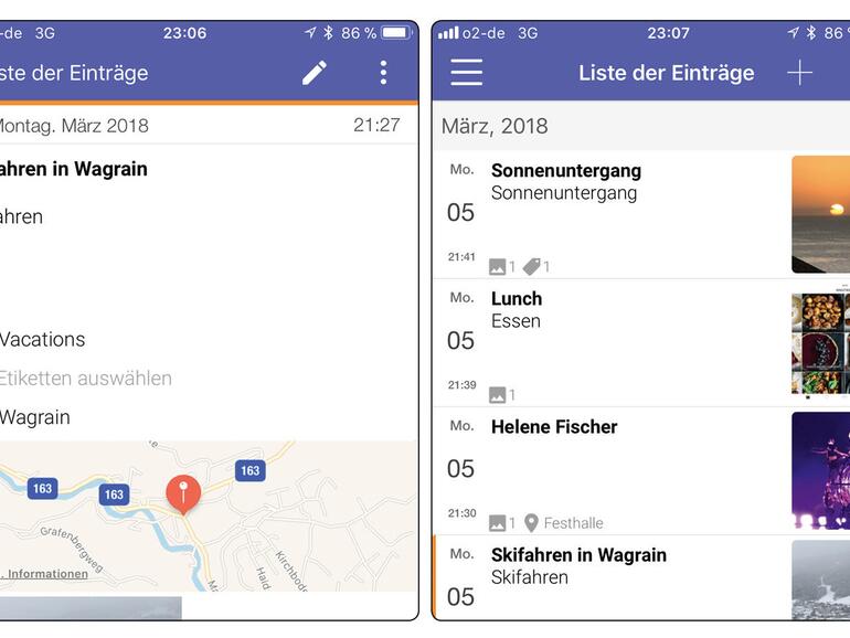 Grundsätzlich speichert Momento alle persönlichen Daten lokal auf dem iPhone. Backups können Sie zwischen dem iPhone und einem Mac mithilfe der Dateifreigabe von iTunes übertragen und anderweitig sichern. Sofern Sie explizit zustimmen, können die Daten auch in die iCloud geladen werden. Eine Synchronisation mit anderen Geräten ist per iCloud aber nicht möglich, lediglich das komplette Einspielen eines Backups wird unterstützt. Die App lässt sich einfach bedienen, auch wenn die Benutzeroberfläche nur in Englisch vorliegt.