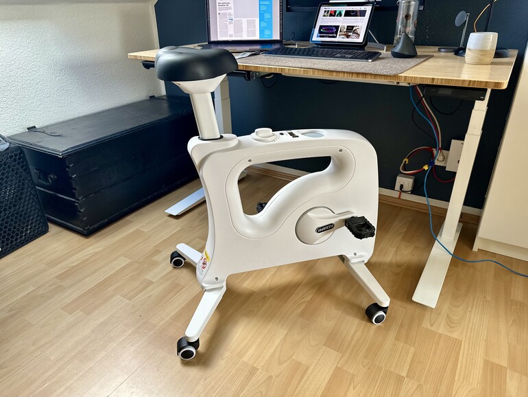 Als jemand, der viel und lange am Schreibtisch sitzt, war meine erste Anschaffung für das coronabedingte Homeoffice ein höhenverstellbarer Schreibtisch. Doch weil schnödes Stehen schnell langweilig wird, habe ich erst die Stehmatte Muvmat von Aeris und später mit dem Smoove Board von Blackroll ein ganzes Activity-Center für die Füße ausprobiert. Beide machen das Stehen in jedem Fall angenehmer. Doch ich wollte mehr. Als passionierter Fahrradfahrer habe ich das Thema Laufband übersprungen und konnte mich direkt mit der Idee der sogenannten Deskbikes anfreunden.