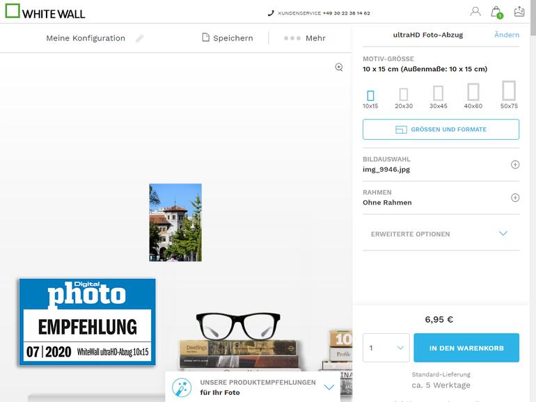 WhiteWall erstellt für jeden Kunden die Abzüge von Hand. Dabei können Sie zwischen verschiedenen hochwertigen Fotopapieren auswählen. Die Qualität der ultra-HD-Prints ist phänomenal. Für ganz besondere Fotos ist das teure Angebot eine interessante Option.