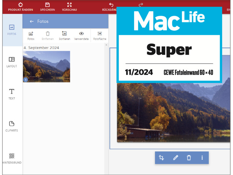 Cewe landet mit seiner Leinwand nur einen Hauch hinter Pixum. Gründe sind minimale Abstriche im Vergleich zum Testsieger bei der Gestaltungslösung und den Versandkosten. Ansonsten gibt es nichts zu meckern. Druck- und Verarbeitungsqualität sind erstklassig.