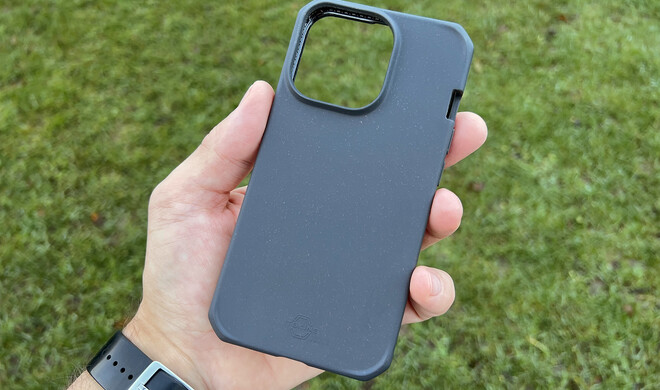 Hülle: Unter dem Namen Feroniabio vertreibt der Hersteller Itskins „grüne“ iPhone-Hüllen in verschiedenen Farben. Denn nicht nur die Verpackung ist zu 100 Prozent aus Pappe gefertigt, auch das Case selbst besteht aus einer Mischung aus Mais- und Weizenstärke und ist dadurch voll kompostierbar (so zumindest das Werbeversprechen). Zudem verspricht der Hersteller, einen Baum pro verkauftem Case zu pflanzen. Das matte Material fasst sich weich an, ist aber nicht so griffig wie Apples Silikon-Case. Durch Itskins patentierte Wabenstruktur im Rahmen trägt die Hülle seitlich ganz schön auf und lässt das iPhone klobig wirken.