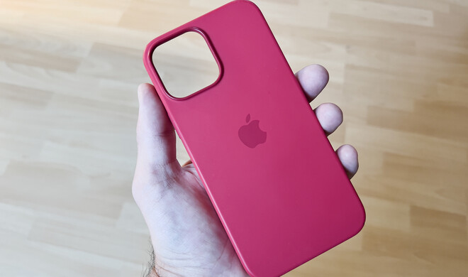 Hülle: Das Silikon Case mit Mag-Safe ist Apple-typisch exzellent verarbeitet. Seine Oberfläche verleiht dem schlüpfrig glatten Smartphone mehr Grip, das Innere ist zum Schutz vor Kratzern mit Mikrofaser ausgekleidet. Dem Design des iPhone 13 Pro mit ausladendem „Kamerabuckel“ folgend, ist die Kamera durch eine die Linsen überragende Kante geschützt – das iPhone kippelt daher, wenn es auf dem Rücken liegt. Die Aussparungen sind passgenau, die Tasten gut zu bedienen.