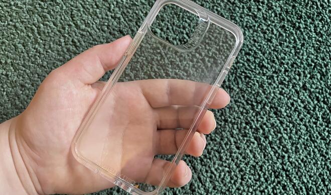 Hülle: Diese iPhone-Schutzhülle von Gear4 ist für alle die richtige, die das eigene iPhone gerne in voller Pracht betrachten, es aber trotzdem vor Schaden bewahren möchten: Stürze aus bis zu vier Metern Höhe steckt sie leicht weg. Das hat aber einen Preis. Mit der Hülle wirkt das iPhone maßgeblich klobiger. Rillen an den Seiten sorgen dafür, dass dir das iPhone trotz der glatten Oberfläche nicht aus der Hand rutschen kann. Die Transparenz verhindert außerdem eine Auskleidung mit Stoff, sodass durch Staubpartikel Kratzer im Inneren der Hülle entstehen können.
