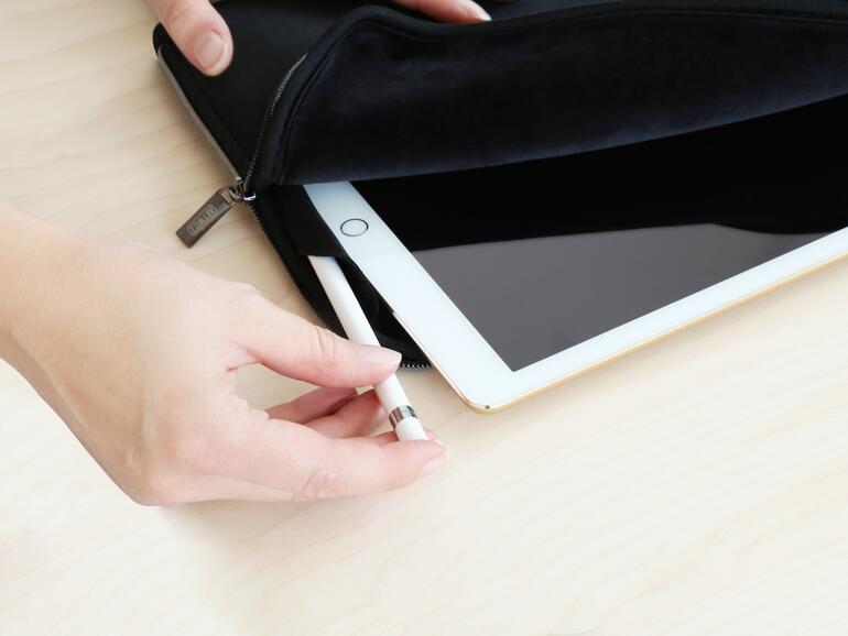 Für alle, die ihr Gerät viel transportieren müssen, sollte die Artwizz Neoprene Sleeve interessant sein. Eine schlanke mit weichem Webpelz ausgestattete Tasche, die ihr iPad Pro zusätzlich mit einem gepolsterten Rand um den Reißverschluss schützt und darüber hinaus im Inneren ein Fach bietet, in das Sie Ihren Apple Pencil stecken können. Letzteres gilt jedoch nur für das iPad Pro 12,9. Die Neoprene Sleeve ist für die Modelle 10,5 und 12,9 in der Farbe Schwarz erhältlich. Sie kostet 36,99 Euro.