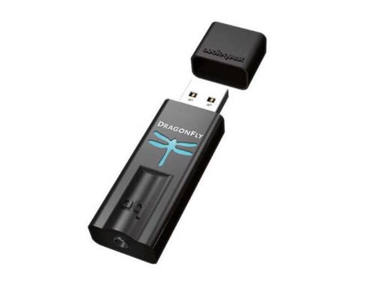 Ein Vertreter dieser Gattung ist der Libelle (DragonFly) getaufte USB-Stick des Herstellers AudioQuest. Er lässt sich zwar nicht an einem i-Gerät betreiben, kombiniert dafür aber drei Geräte: einen DAC, einen Vorverstärker und einen Kopfhörerverstärker. So können Sie am DragonFly Kopfhörer, aktive Lautsprecher und Verstärker genauso betreiben wie traditionelle Vorverstärker oder einen AV-Receiver.