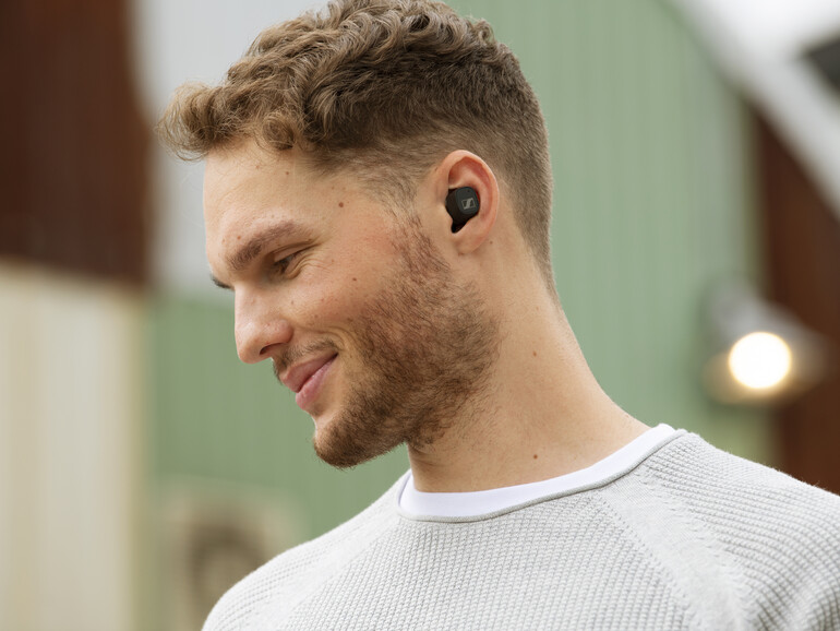 Die Sennheiser CX True Wireless können aber bei dem Halt im Ohr überzeugen, trotz großer Skepsis der Testerin. Einer der Gründe dafür sind die beigelegten Silikonaufsätze, die in unterschiedlichen Größen kommen. Je nach Ohrform und Größe können sie Tragekomfort und Halt herstellen.