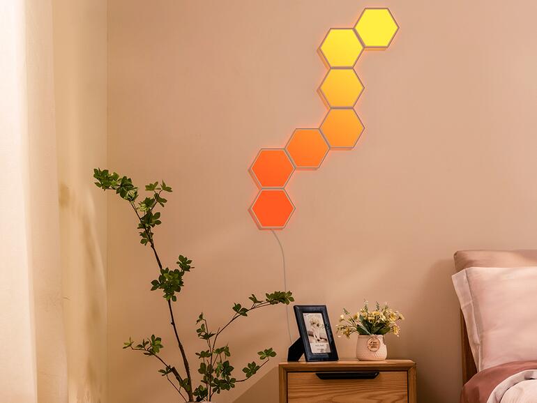 Mit den Hexa Light Panels hat Govee nun ein weiteres Produkt, mit dem das Unternehmen mit den Platzhirschen Nanoleaf und Philips Hue konkurrieren kann. Erhältlich als 7er- oder 10er-Pack kannst du mithilfe eines nicht unkomplizierten Stecksystems die Sechsecke in einer beliebigen Form an die Wand deiner Wahl anbringen.