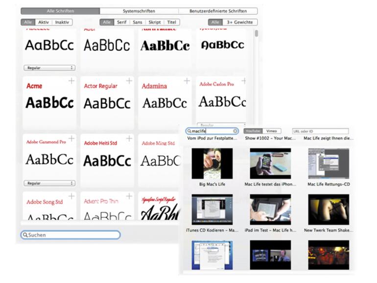 Da man als Betreiber einer Webseite nicht davon ausgehen kann, dass auf allen Systemen eine bestimmte Schriftart installiert ist, unterstützt das Programm Webfonts und bindet diese automatisch ein. Auch die Erstellung von Farbverläufen ist in Sparkle eine Sache von wenigen Klicks. Für YouTube- und Vimeo-Videos stellt Sparkle eine Suchfunktion zur Verfügung, es ist nicht notwendig, sich die Adresse des Videos aus dem Web-Browser zu kopieren. Weniger gut gelöst ist dafür das Einfügen von Bildern: Der Medien-Browser zum einfachen Zugriff auf die iPhoto- und Aperture-Mediathek ist nicht integriert, und statt das Bild einzusetzen, wenn es auf einen Platzhalter gezogen wird, fügt Sparkle das Bild als weiteres Objekt hinzu.