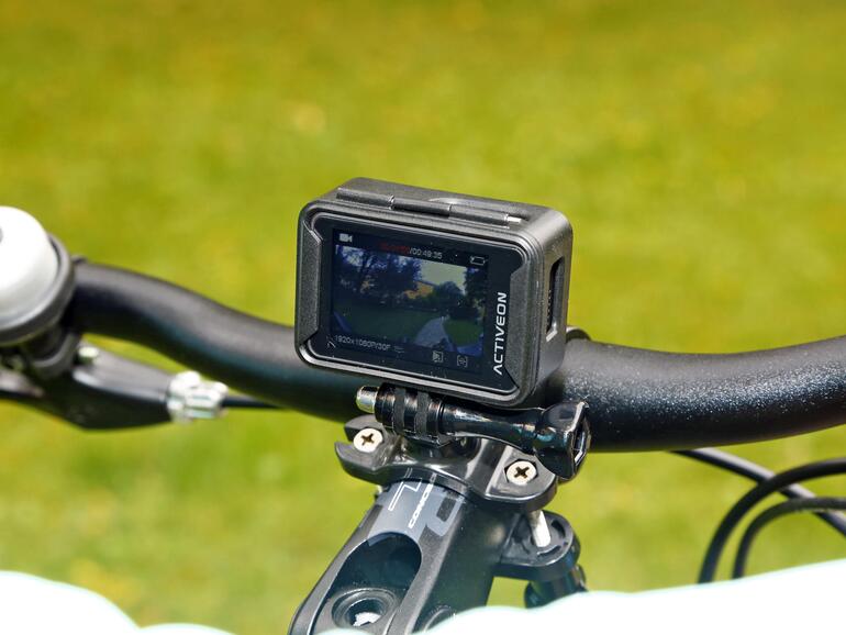 Mit der CX Gold hat Activeon eine optimierte Version des Einsteigermodells im Programm. Für den Aufpreis von rund 100 Euro gibt es nicht nur mehr Auflösung (Full HD bei 60 Bildern pro Sekunde) beim Filmen und eine Fotoauflösung von 16 Megapixeln. Sie kommt auch mit einem Touchscreen an der Rückseite, was die Bedienung der Actionkamera stark verbessert. Zwar ist er nicht mit dem Komfort zu vergleichen, den man vom iPhone gewohnt ist, aber das Einstellen von Aufnahmemodi und Blättern durch Fotos und Videos gelingt mit Display und Touchscreen sehr komfortabel. Mit dabei ist auch viel Zubehör, wie zum Beispiel das Unterwassergehäuse (bis 60 Meter), und eine Klebebefestigung für den Fahrrad- oder Skihelm oder das Autocockpit – je nach Sportart. Damit ist die Kamera in Minuten montiert und hält bombenfest. Die Aufkleberhalterungen können im Set nachgekauft werden (sechs Stück kosten rund 15 Euro).