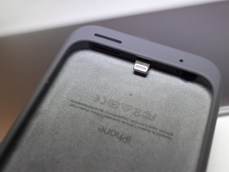 Das Case und somit auch das iPhone wird über ein USB-auf-Lightning-Kabel geladen. Ob erst das iPhone und dann das Case oder aber beide Geräte zeitgleich geladen werden, hängt von der Ausgangsleistung des verwendeten Ladegeräts ab. Selbst mit dem schwachbrüstigen Steckernetzteil aus dem iPhone-Lieferumfang sind das Duo aus Akku-Case und Smartphone aber über Nacht wieder voll einsatzbereit. Ist das Case vollständig geladen, wird dies durch eine LED im Inneren der Hülle angezeigt. Die ist bei eingeschobenem iPhone aber verdeckt. Genaue Auskunft erteilt ein in iOS integriertes Widget, das den Ladestand in der Mitteilungszentrale visualisiert.