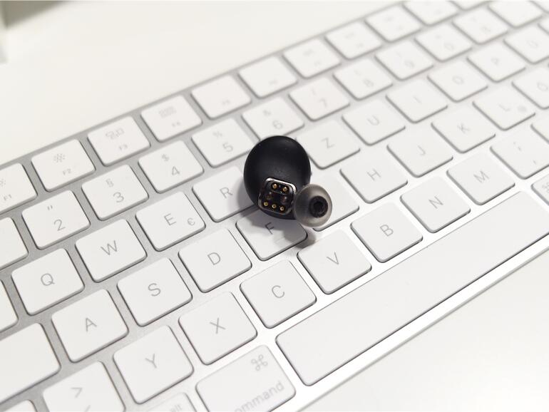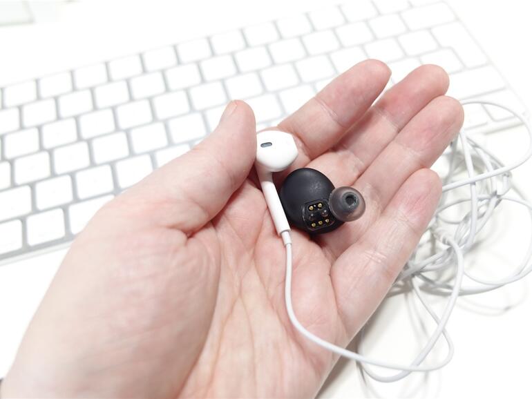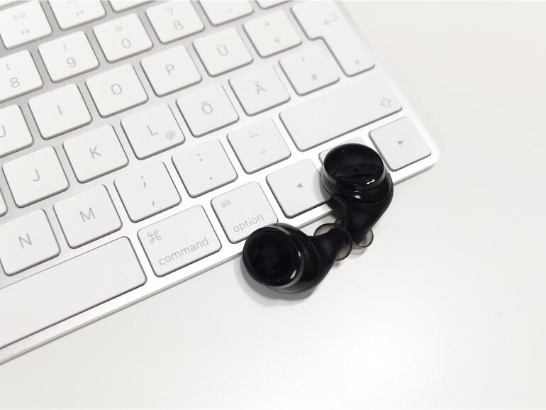 Die beiden Ohrstecker wirken auf den ersten Blick wie ganz besonders hippe In-Ear-Hörgeräte. Beide Stecker sind deutlich größer als herkömmliche In-Ear-Kopfhörer, die meist lediglich den vorderen Teil des äußeren Gehörgangs für sich beanspruchen. Die The-Dash-Stecker füllen hingegen einen großen Teil der Ohrmuschel aus - kein Wunder, denn irgendwo müssen Akkus und weitere Elektronik ja ihren Platz finden. Dank vier verschieden großer Paare an Silikon-Überziehern sitzt The Dash sowohl in „Mauseöhrchen“ als auch in Ohren vom Modell „Prince Charles“ sicher. Ein Herausfallen ließ sich nicht einmal durch wildes Kopfschütteln provozieren. Aufgrund von Größe und Gewicht, selbst 13 Gramm pro Ohr tragen ganz schön auf, ist das Komfortgefühl nur mäßig.