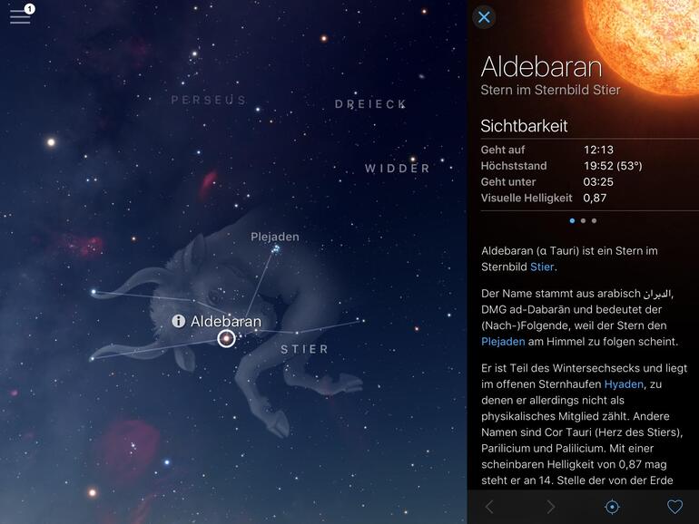 Wenn es ein Nachschlagewerk gibt, das die Möglichkeiten des iPhones auf effiziente Weise einsetzt, dann ist es Sky Guide . Die App zeigt eine extrem detaillierte Sternenkarte, die auf Wunsch mithilfe des Kompasses und der Trägheitssensoren mit dem iPhone oder iPad zusammen gedreht wird und sich sehr weit hereinzoomen lässt. Wer sich nachts nach draußen stellt, kann so alle Sternbilder und Sterne live identifizieren. Auf einen Fingertipp hin zeigt die App sehr detaillierte Informationen zu jedem Himmelsobjekt. Dabei macht die App auch vor Kometen und Satelliten nicht halt, deren Position und Flugbahn ebenfalls angezeigt wird. Natürlich lassen sich auch andere Uhrzeiten und Positionen auf der Erde für die Betrachtung simulieren. Sky Guide schafft damit, was keine Website und kein Atlas leisten könnte. Man erkundet spielerisch den Himmel und lernt nebenbei eine Menge Wissenswertes über Astronomie.
