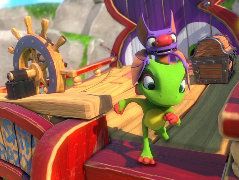 … und Banjo-Kazooie trägt den Namen Yooka-Laylee: An die Stelle des dynamischen Duos aus Bär und Vogel treten im Hier und Jetzt nämlich Chamäleon und Fledermaus. Abgesehen vom Titel bleibt das teils via Crowdfunding finanzierte Yooka-Laylee seinem Vorbild aus dem Jahre 1998 treu. Dass das tatsächlich vollumfänglich gelungen ist, verwundert kaum, zeichnen doch einige der wichtigsten Köpfe hinter Banjo-Kazooie für die Entwicklung von Yooka-Laylee verantwortlich.
