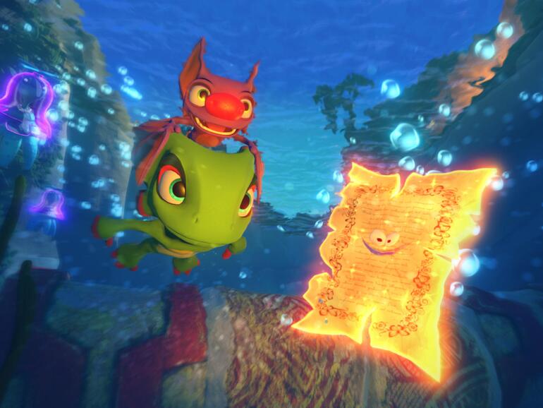 Vom Titel darf man sich nicht täuschen lassen. Dort wo Yooka-Laylee draufsteht, steckt nämlich eine riesengroße Portion Banjo-Kazooie drin. Banjo-Kazooie, entwickelt von der seinerzeit eng mit Nintendo verbandelten Spieleschmiede Rare, gehört zusammen mit „Super Mario 64“ zu den ersten Hüpfspielen, die das Spielgeschehen von der platten 2D-Draufsicht in die dritte Dimension hin erweiterten und das Genre mit einer 360-Grad-Handlungsfreiheit revolutionierten.