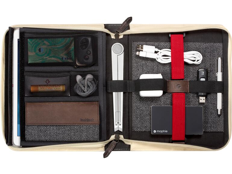 Auf der rechten Seite finden größere Gegenstände Platz. Kopfhörer lassen sich hier genauso sicher verstauen wie Netzteile oder Adapter. Auch Netzwerk- und Videokabel, unerlässlich für Vortragsreisende, finden hier ein Zuhause. Ebenso externe Festplatten oder UMTS- beziehungsweise LTE-Adapter. Also eigentlich alles, was man als Apple-Nutzer so mit sich führen kann.