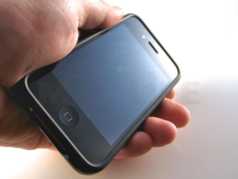 <b>Das Zuebhörteil liegt eng am iPhone an, lässt sich aber ohne großen Kraftaufwand wieder abnehmen.</b> (Bild: Falkemedia, Stefan Molz)