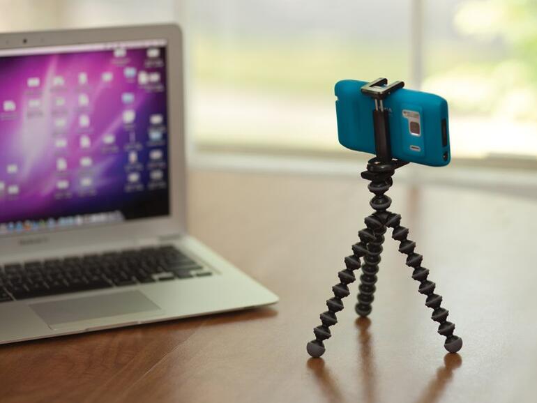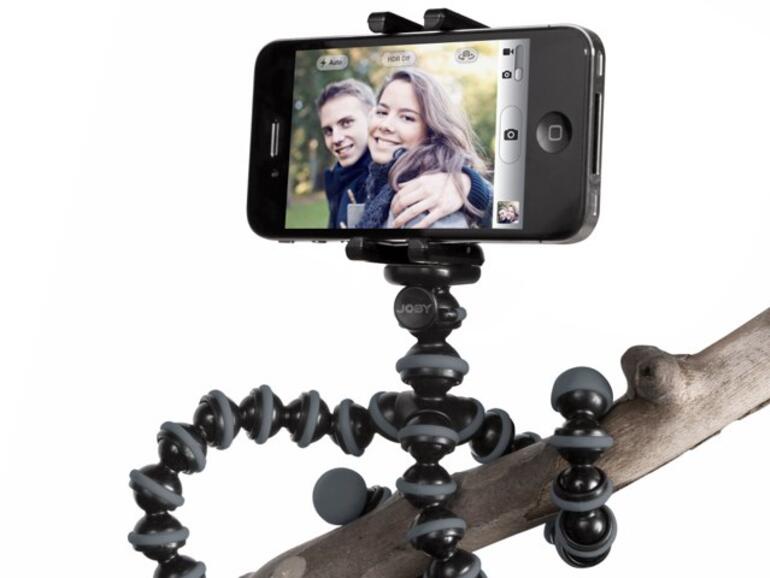 Die Handhabung des GripTight GorillaPod Stand ist kinderleicht. Das Smartphone wird in eine universelle Halterung eingespannt, die ihrerseits über ein herkömmliches Stativgewinde mit dem Joby-typischen Miniatur-Stativ befestigt wird. Bei unserem Test passten sämtliche iPhone-Modelle mitsamt Schutzhüllen in die Halterung, auch Android-Smartphones stellten kein Problem da.