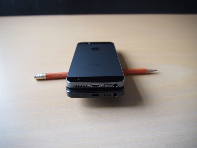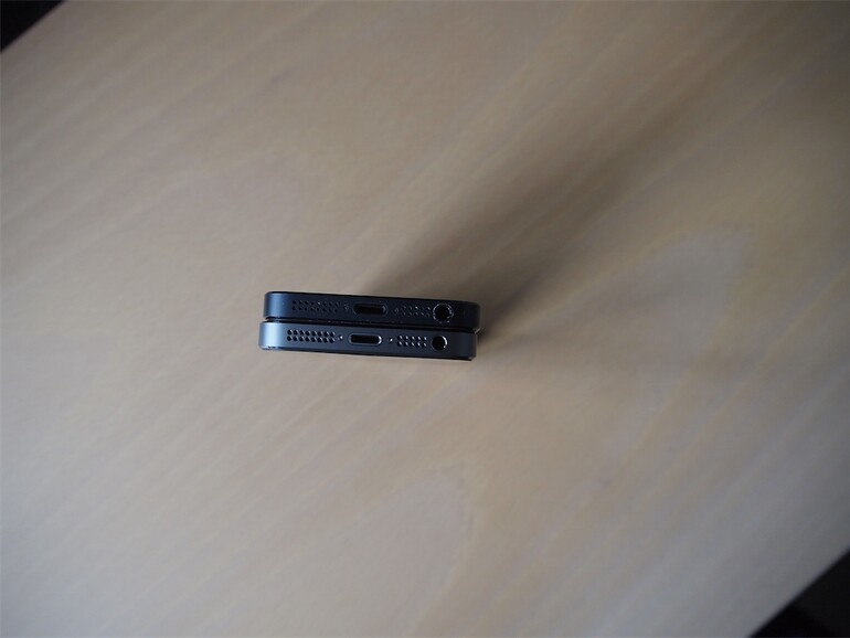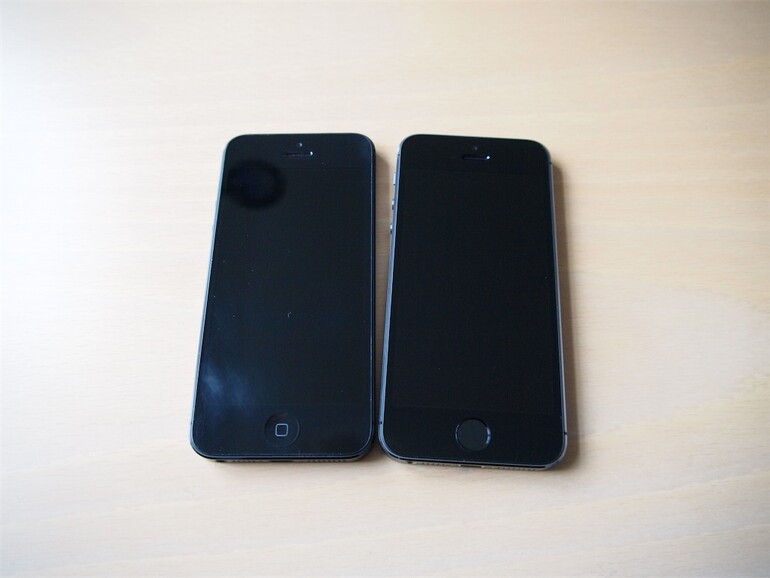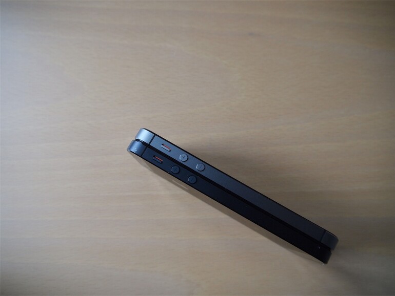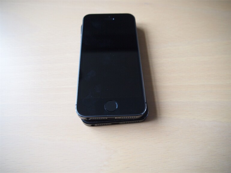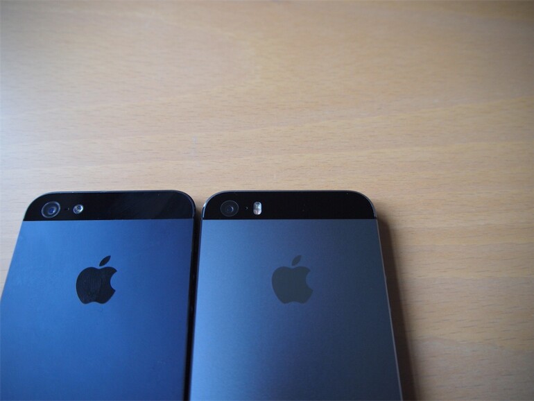 Beim iPhone 5s steht der Buchstaben S wahlweise für Sensoren, Sonderklasse und Spitzenmodell oder für alle drei Begriffe gleichzeitig. Auf den ersten Blick unterscheiden sich iPhone 5 und iPhone 5s nicht. Die Abmessungen sind sogar beim Gewicht identisch. Ebenfalls nur 7,6 Millimeter tief bringt das iPhone 5s die gleichen 112 Gramm auf die Waage, obwohl laut Apple der Akku vergrößert sein soll. Hüllen und Cases werden passen, weil alle Bedienelemente am gleichen Platz befindlich sind. Auf dem zweiten Blick sieht man die Unterschiede. Auf der Rückseite sieht man einen zweiten Blitz für die Kamera und auf der Vorderseite ist der neue Home-Button mit seinem plan scheinenden Glas von einem metallisch glänzenden Ring einfasst.