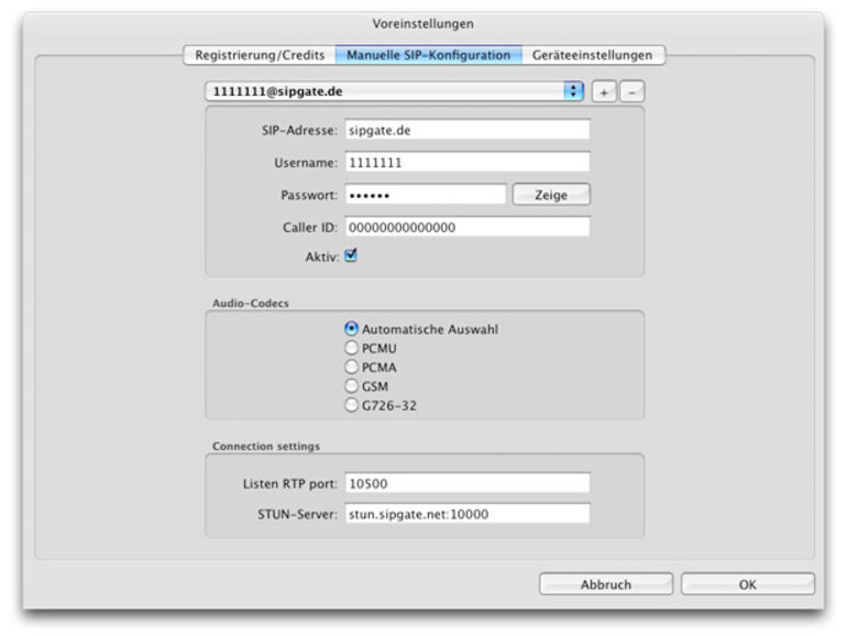 iSoftPhone wird mit rasender Schnelle aktualisiert, alleine während unseres Tests erschienen drei Updates. Und während mit Version 1.0019 unser QSC-IPfonie-Account noch den Verbindungsaufbau verweigerte, kam dieser schon mit Version 1.0026 klaglos zustande. Auch die Nutzung mit sipgate lief reibungslos ab, das erste Freizeichen stotterte zwar stets, die durchschnittliche Sprachqualität entsprach jedoch der eines guten Ferngesprächs. Lediglich ein leichtes Echo und eine zuweilen etwas störende Übertragungsverzögerung fielen unschön auf, was aber nicht zwingend auf iSoftPhone zurückzuführen ist, da dieser Effekt sowohl von Anbieter zu Anbieter als auch Gespräch zu Gespräch schwankte. Wer seinen bevorzugten Provider unterstützt sehen möchte, findet unter www.call4mac.com/isoftphone/providers.html entsprechende Hilfestellung.