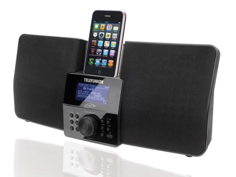 Sie produzieren einen relativ angenehmen Präsenzbereich und geben den Hochtonbereich noch akzeptabel wieder, müssen aber technologiebedingt bei der Tieftonwiedergabe passen, da sie nicht als Bassreflexsystem ausgelegt werden konnten. Die erste Inbetriebnahme klappt problemlos: Nachdem das iP300 ins heimische WLAN eingebucht ist, bringt es automatisch seine Firmware auf den aktuellen Stand. Gewöhnungsbedürftig ist die Funktionalität des zentralen Drehknopfes. Er dient lediglich der Navigation durch die Menüstruktur des Geräts, obwohl man erwartet, die Lautstärke damit regulieren zu können. Im Menü von iPod touch oder iPhone kann er ebenfalls nicht verwendet werden. Auch die Fernbedienung muss in diesem Punkt passen – durch die Mediathek muss man direkt am Touchscreen navigieren, was ihren Sinn an sich untergräbt. Immerhin schaltet ein Druck auf die Select-Taste kurz den beleuchteten Startbildschirm an, so dass im Idealfall das Plattencover des laufenden Titels erscheint. Zu erwähnen ist die Weckfunktion mit zwei separaten Zeitspeichern, die täglich, nur an Wochenenden oder nur an Werktagen aktiviert werden können. Leider spiegelt das durchgehend aus Plastik bestehende Äußere des Systems den relativ hohen Anschaffungspreis überhaupt nicht wieder.