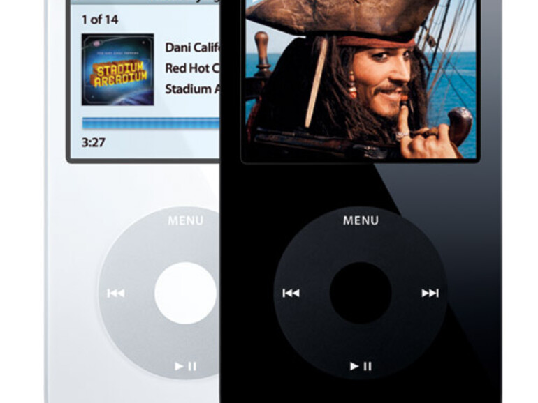 Der iPod der fünften Generation kann über iTunes nicht nur mit Musik in den Formaten AAC/AAC+, MP3, MP3 VBR, Apple Lossless, AIFF und WAV oder Fotos befüllt werden, auch Filme gibt das Multitalent wieder. Voraussetzung: Die Videos befinden sich in der iTunes-Bibliothek und liegen in den Formaten H.264 oder MPEG-4 vor. Die Bildschirmdiagonale des iPod-Dispalys beträgt 6,35 cm bei einer Auflösung von 320 x 240 Bildpunkten und einem Punktabstand von 0,156 mm. Das klingt auf dem Papier nicht umwerfend, in der Realität zeigt sich allerdings, das die Bildqualität des Displays hervorragend ist.