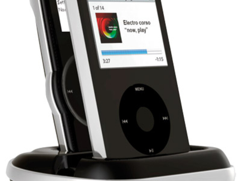 So lässt sich auch aus größerer Entfernung, zumindest theoretisch, präzise durch die iPod-Menüs steuern, ohne darauf angewiesen zu sein, das Display des Musikspielers aus der Ferne erraten zu müssen. Das ewoo-Dock verfügt über einen digitalen und einen analogen Audioanschluss sowie einen S-Video-Port, mit dem sich Videos vom iPod auf dem TV-Gerät wiedergegeben abspielen lassen. Im Lieferumfang des ewoo ist ein Audio-, aber kein S-Video-Kabel enthalten.